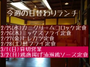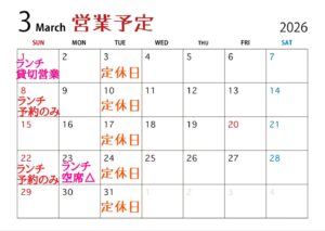 - 2026年02月27日 【今週ランチ営業変更のお知らせ】 ◎3/1(日)ランチタイム…