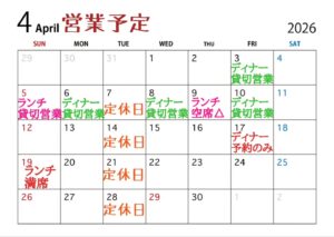 - 2026年03月30日 【4月の営業予定ご案内】 3月はたくさんのご利用誠にありがと…