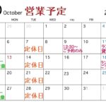 10月の営業ご案内です。 今月から団体様のご予約が増え、週末は...