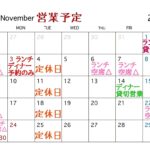 11月の営業予定ご案内です。 11月もありがたいことに団体様の...